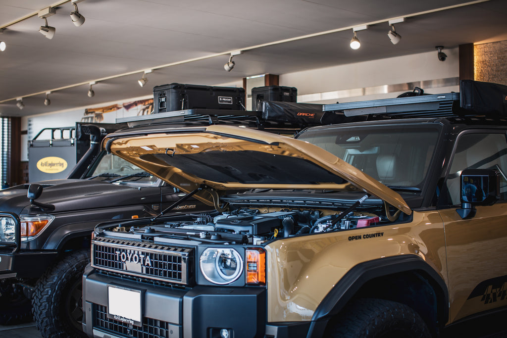 リアビューをスタイリッシュに彩る専用リアラダー。はしご部は差し込み&溶接処理を行うことで耐荷重能力を高めています。